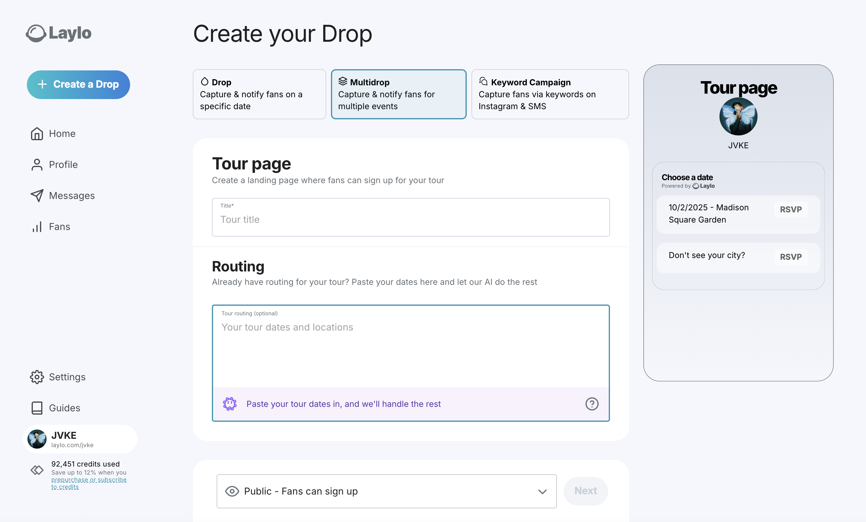 When you drop tours with Laylo, you stay in control.