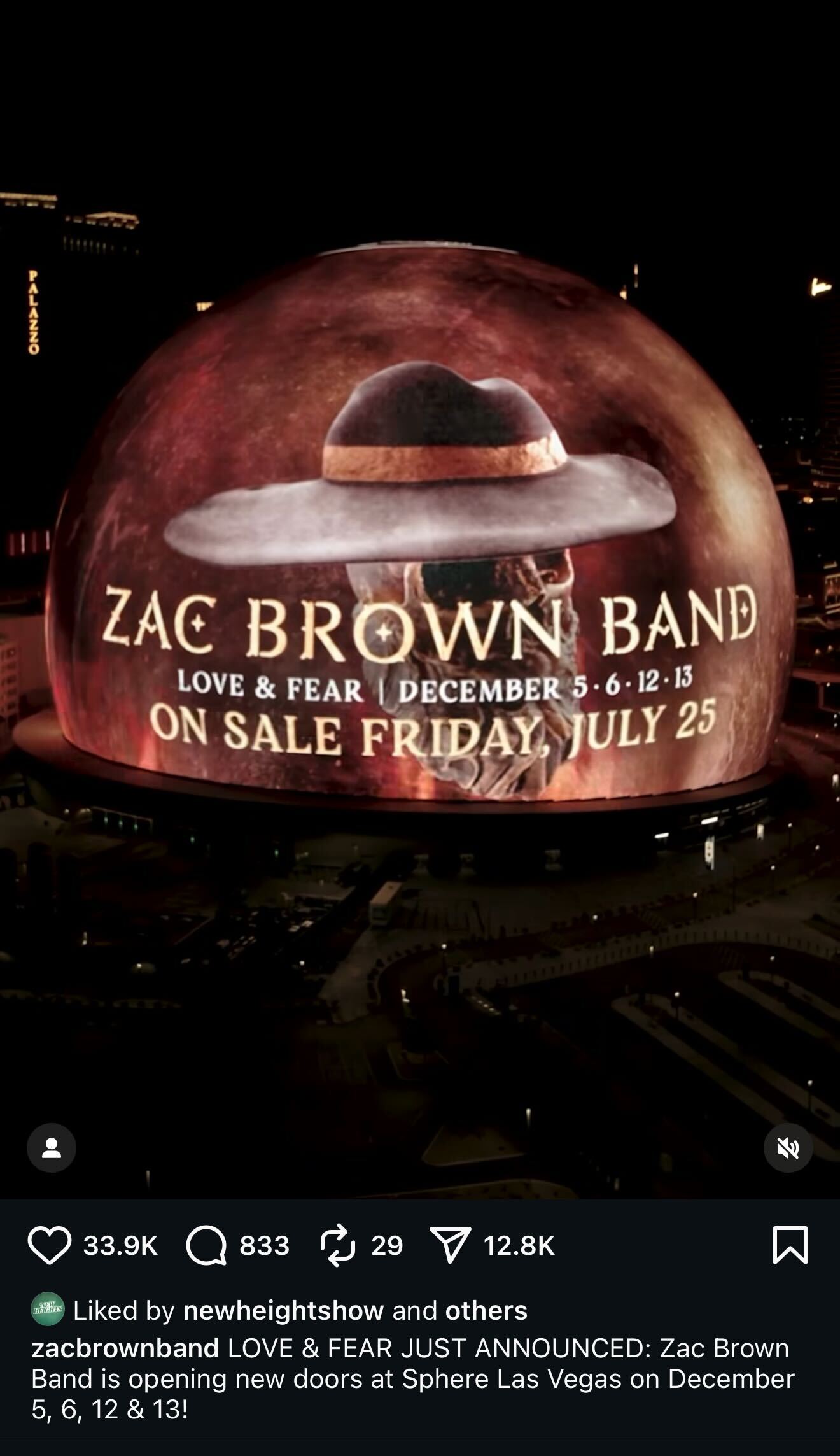 Headlining Sphere is a big moment for any band, and Zac Brown Band wanted to make sure they did it right. Leading up to the drop, Zac Brown Band used a mix of strategies to drive new fan list signups and get loud online and IRL. Dive in below.