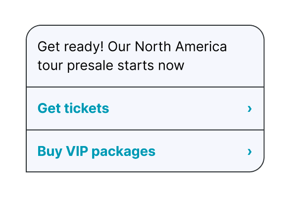 Fans don’t just receive messages; they interact with them. From quick replies to tap-to-buy, every message becomes a conversion moment.